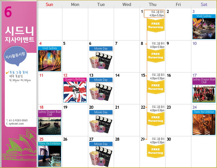 안녕하세요? 시드니지사 6월 Activity Calendar 알려드립니다.