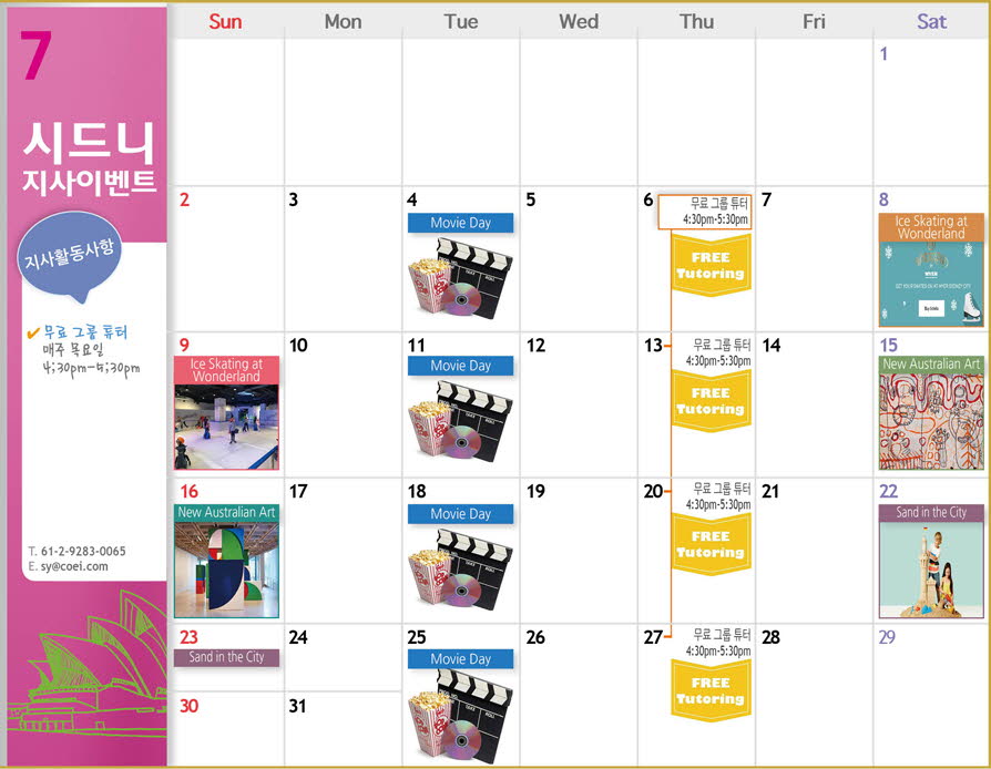 안녕하세요? 시드니지사 7월 Activity Calendar 알려드립니다.