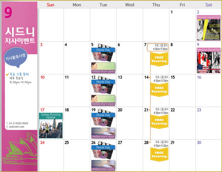 안녕하세요? 시드니지사 9월 Activity Calendar 알려드립니다.