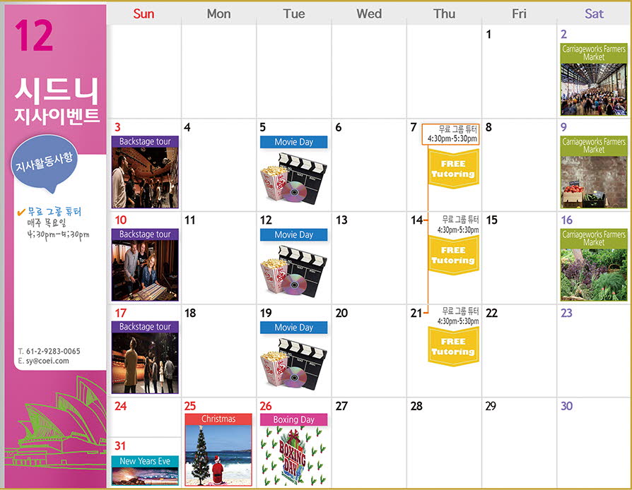 안녕하세요? 시드니지사 12월 Activity Calendar 알려드립니다.