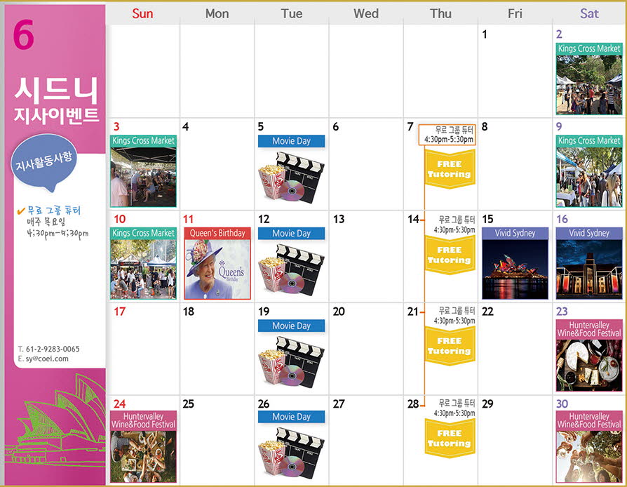 안녕하세요? 시드니지사 6월 Activity Calendar 알려드립니다.