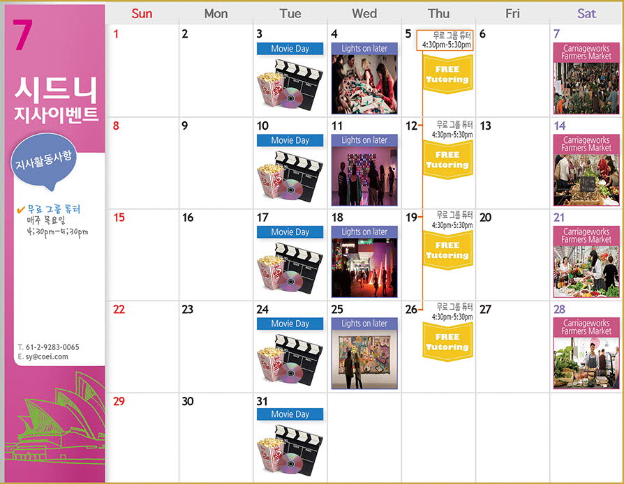 안녕하세요? 시드니지사 7월 Activity Calendar 알려드립니다.