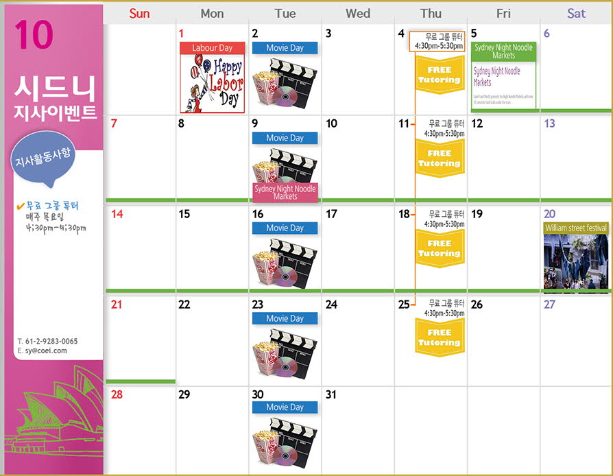 시드니지사 10월 Activity Calendar 알려드립니다.