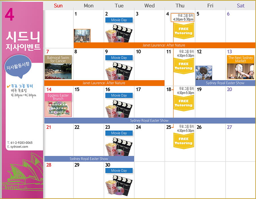 시드니 지사 4월 Activity Calendar 알려드립니다.