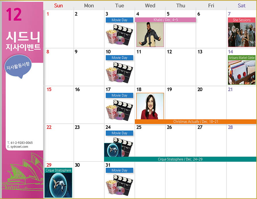 시드니 지사 12월 Activity Calendar 알려드립니다.
