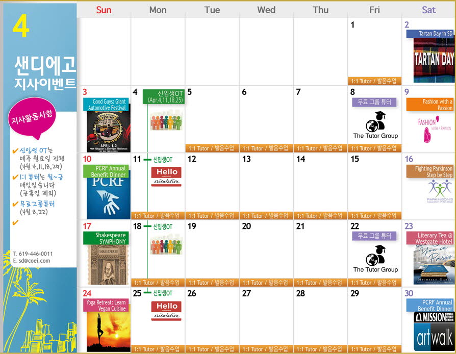 안녕하세요 샌디에고 지사 4월 액티비티 칼랜더 소개해 드립니다.