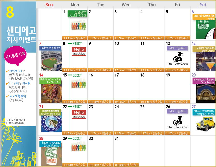 8월의 샌디에고지사 이벤트와 지역에서 이뤄 지는 이벤트를 알려 드립니다.