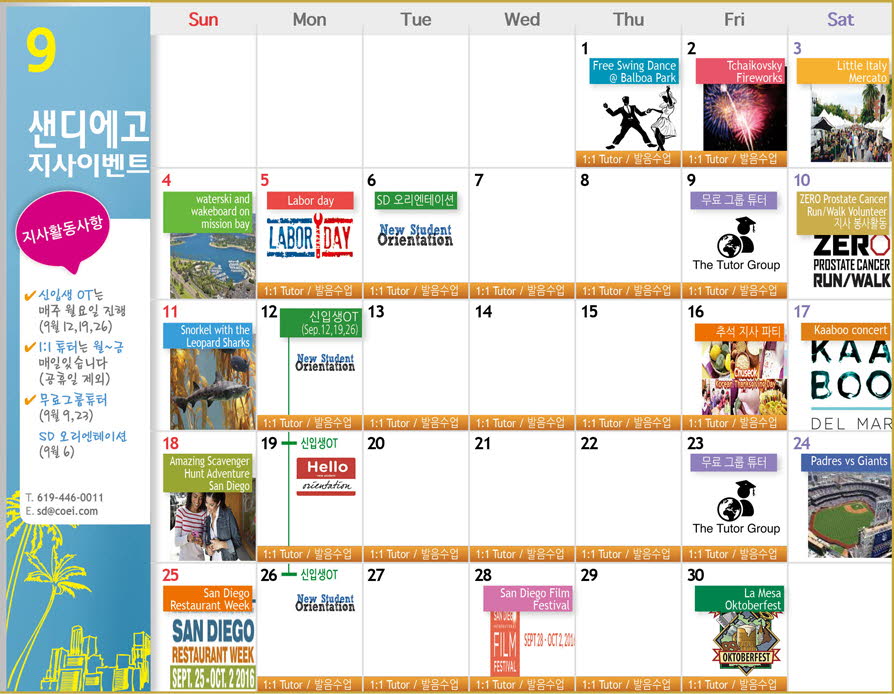 10월 샌디에고 액티비티 & 이벤트 캘린더▼ 다음글