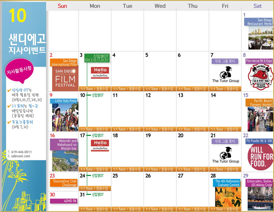 샌디에고지사 10월 Activity Calendar 안내드립니다~