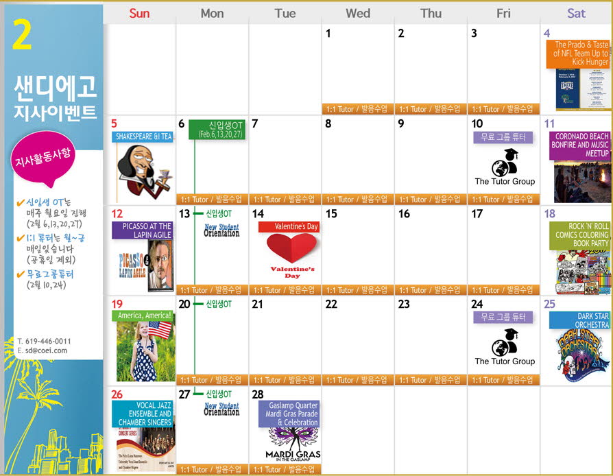 샌디에고 지사 2월 Activity Calendar 안내 드립니다~