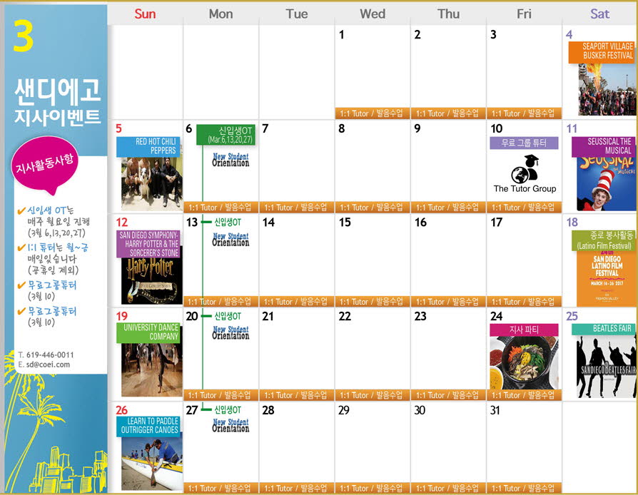 샌디에고지사 3월 액티비티 캘린더 안내 드립니다~