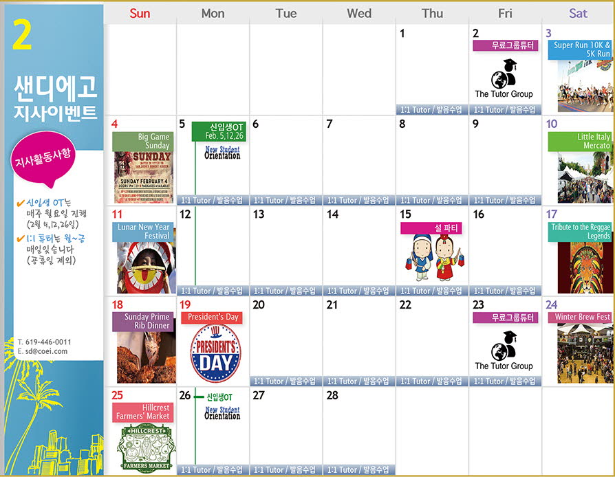 3월 샌디에고 액티비티 & 이벤트 캘린더▼ 다음글
