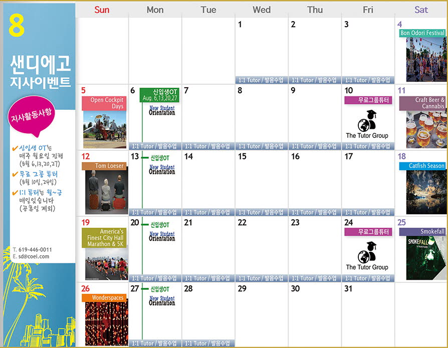 안녕하세요 샌디에고 지사 8월 액티비티 캘린더 안내 드립니다.