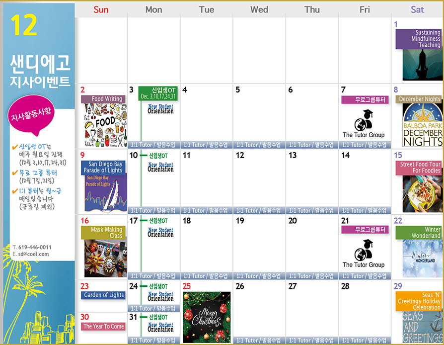 1월 샌디에고 액티비티 & 이벤트 캘린더▼ 다음글