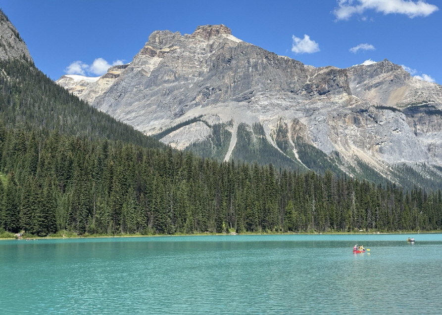 이름처럼 물의 색깔이 애매랄드 빛이었고 레이크 루이스처럼 카누를 탈 수 있었어요.