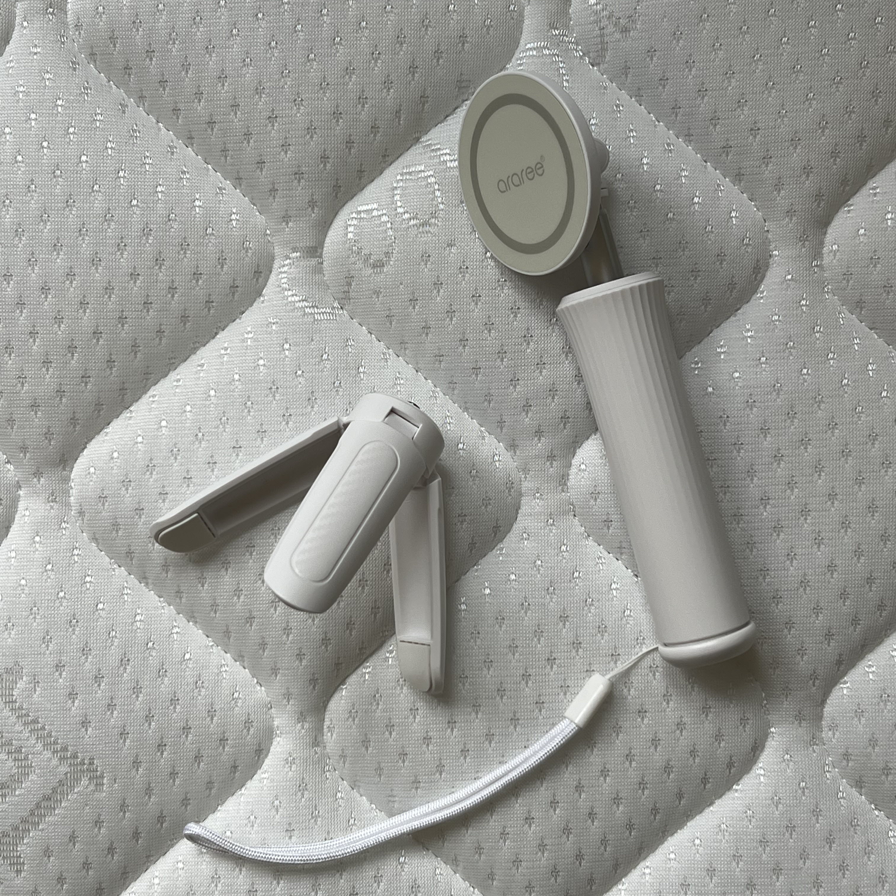 혼자 다닐 일이 많기도 하고 여행 다닐 때 사진이나 영상을 찍을 때 편할 거 같아서 챙겼어요. 맥세이프 기능도 있고 삼각대는 탈부착이 가능해요 삼각대 포함해도 116g의 무게라서 가지고 다니기 편해요.