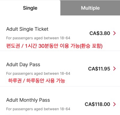 장기 체류나 출퇴근 목적이라면 Monthly Pass 를 구매하시는 걸 추천드립니다.