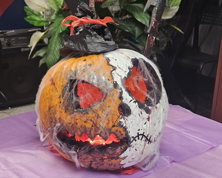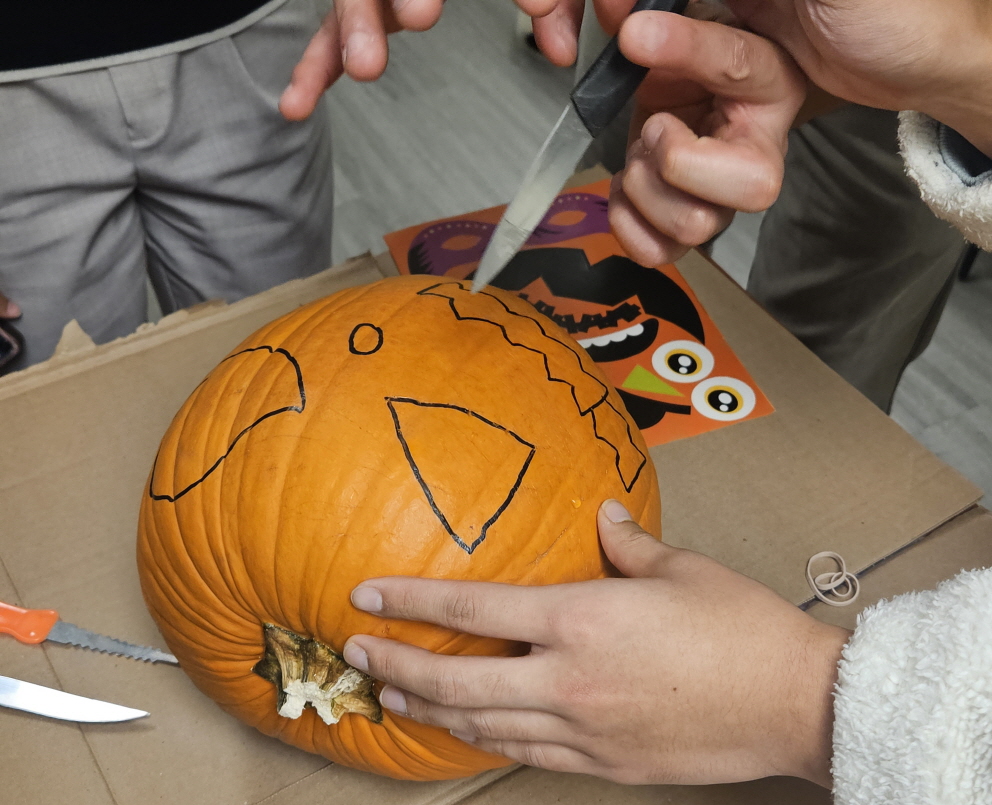 직접 호박을 파서 class mates들과 단합해 무섭게 꾸몄는데