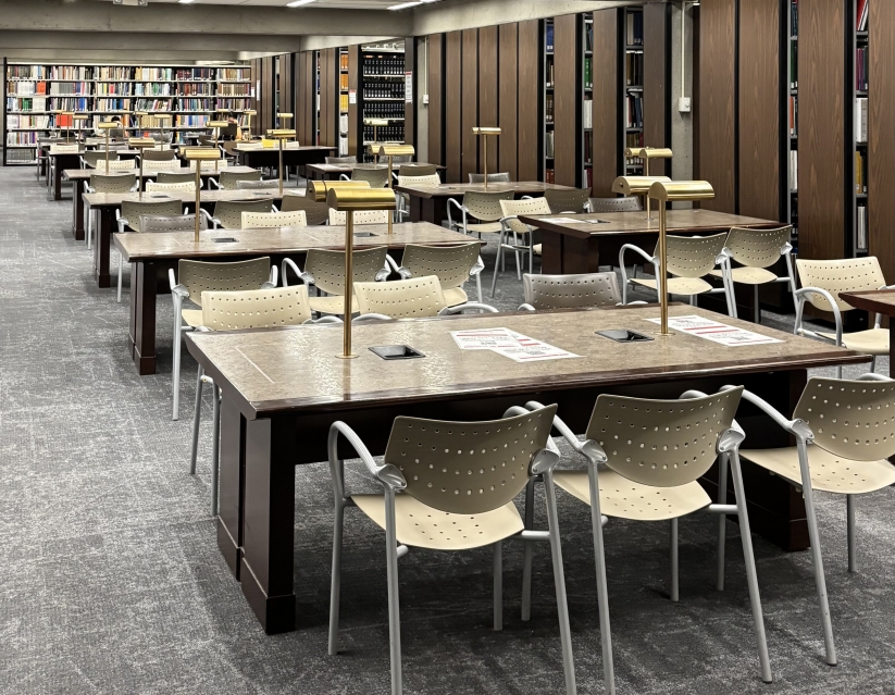 총 4층으로 되어 있고 책상도 그룹 책상, 독서실형 책상, 복도에 있는 것, 넓은 1인용 책상 등등