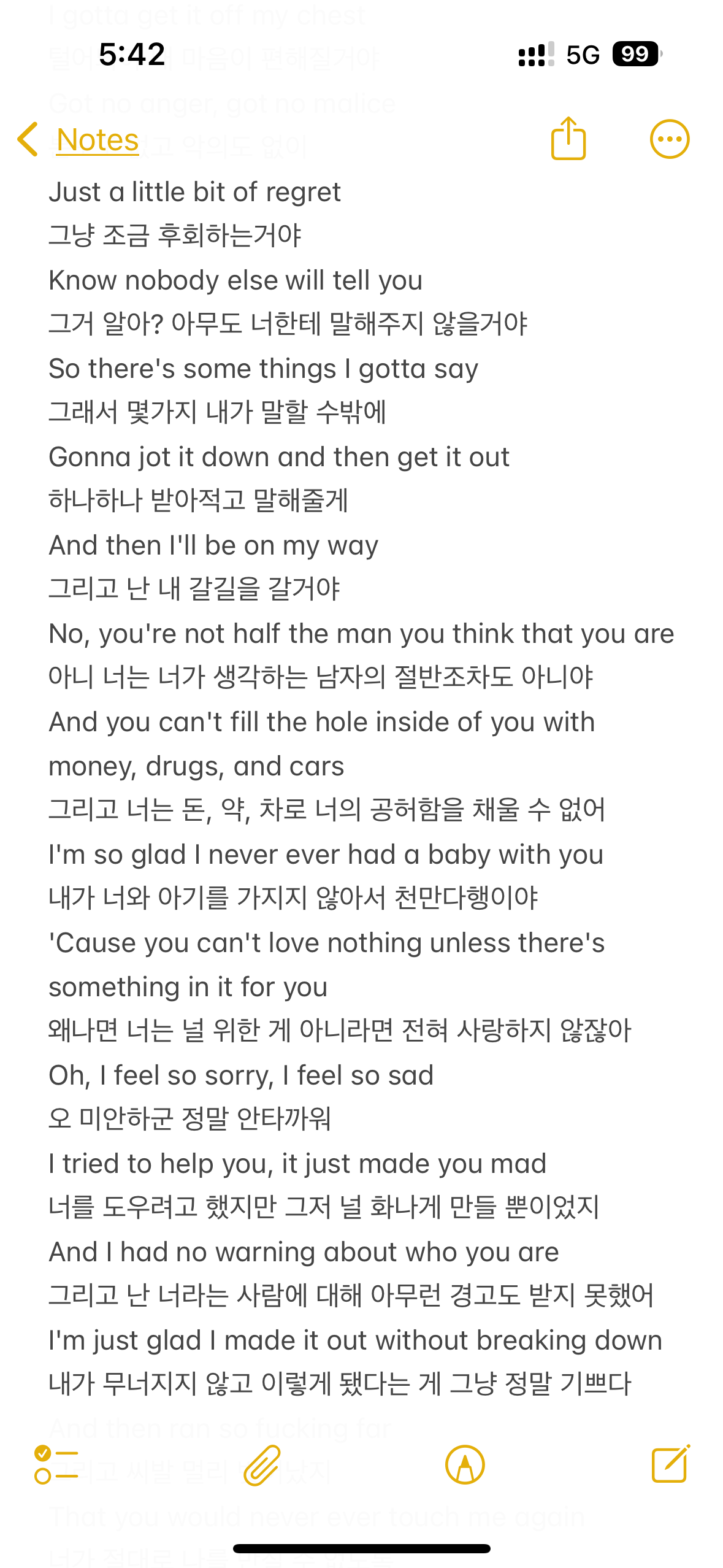 그리고 뜻을 완전히 이해했으니 수십 번 들어도 멜로디만 듣는 것이 아닌 한 글자씩 귀에 꽂히는 기분이 들더라구요.