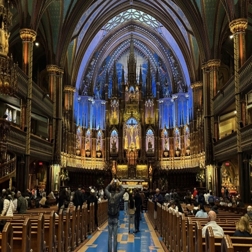 몬트리올 대성당은 그 화려하고 웅장한 규모에 한참을 감상했어요. 정교한 내부 경관이 예술이었어요.