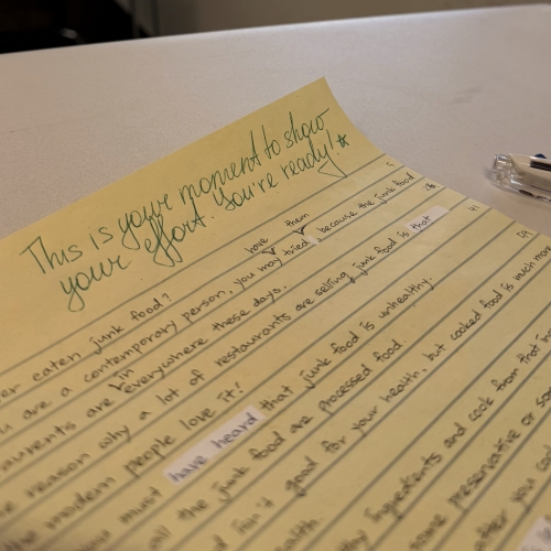 이 사진은 Writing 시험지의 사진인데요, ILAC에서는 2주에 한 번씩 테스트를 봐야 해요.