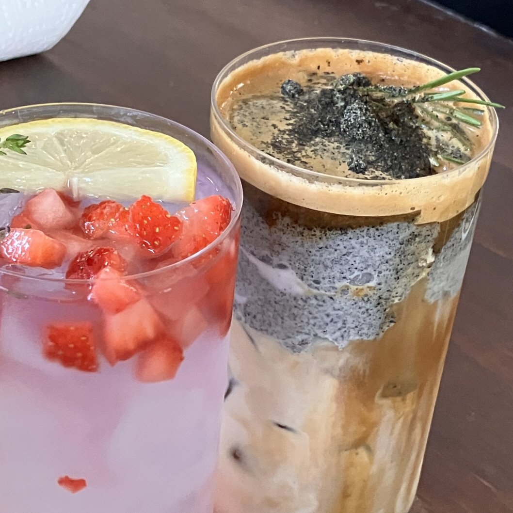 저는 이곳에서 흑임자라떼를 시키고 제 친구는 딸기 에이드를 시켰는데, 둘 다 맛있게 잘 마셨습니다.