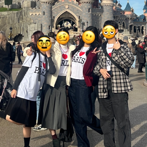 다 같이 I LOVE PARIS 티셔츠를 입고 가줬답니다 디즈니랜드 성 앞에서도 가족사진 찍었어요. ㅎㅎ