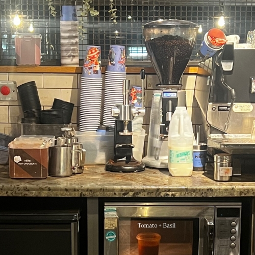 카페에서 이른 아침을 먹으면서 체크인 시간을 기다렸어요.