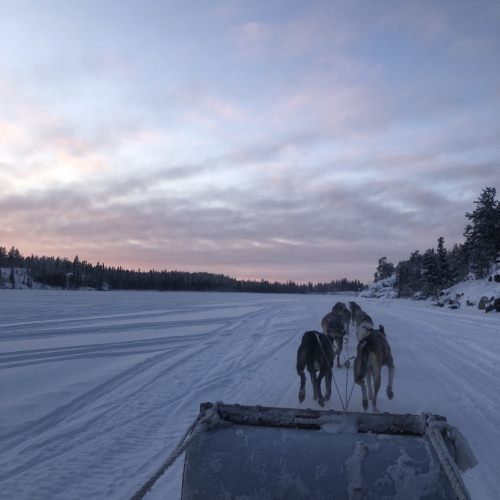 수십 마리의 개가 끌어주는 썰매가 옐로나이프의 전통 썰매라고 해서 더 신나고 재밌는 경험이었어요.
