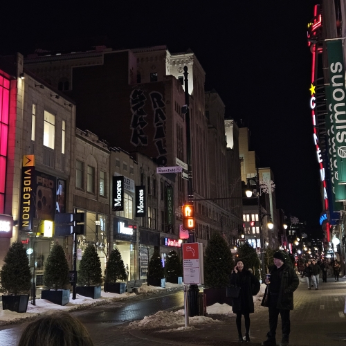 호텔에 체크인을 하고 가이드님과 함께 몬트리올 시내의 메인 스트릿인 St. Catherine Street을 걸었어요.