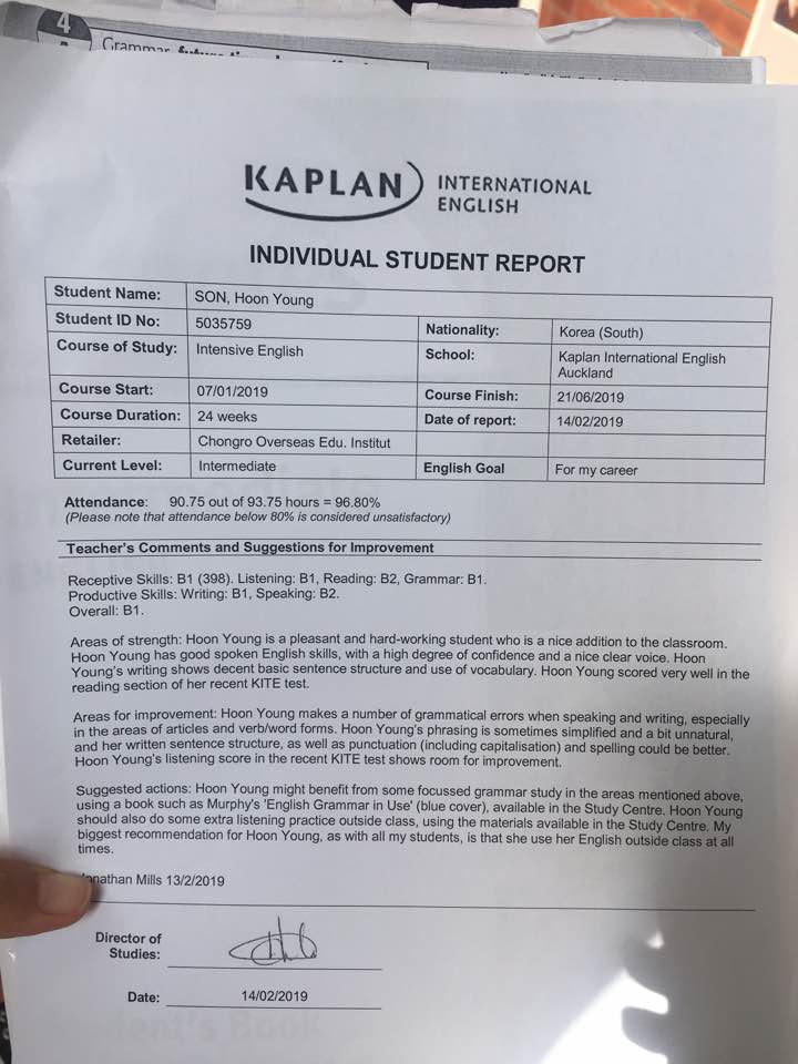 시험점수가 나오고 티쳐의 생각을 적어줍니다!!!!