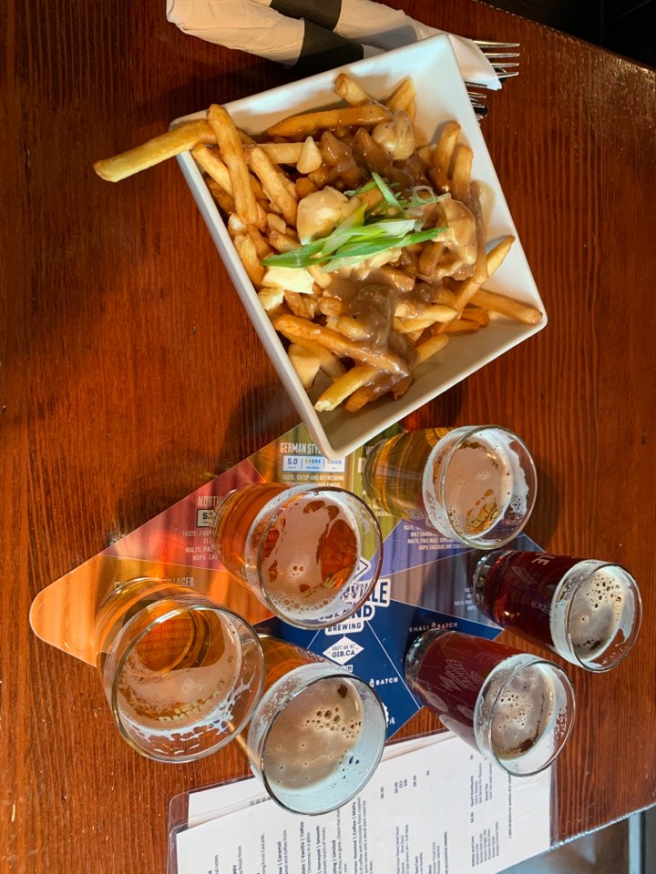 양조장 옆에 바로 맥주를 마실 수 있는 공간이 마련되 있어서 앉아서 푸틴과 맥주 샘플러를 주문했어요.
