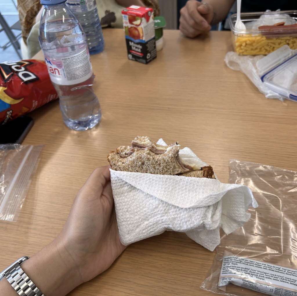 점심은 학원에서 친구들이랑 먹어요 홈스테를 하는 친구들은 보통 샌드위치가80프로 입니다.