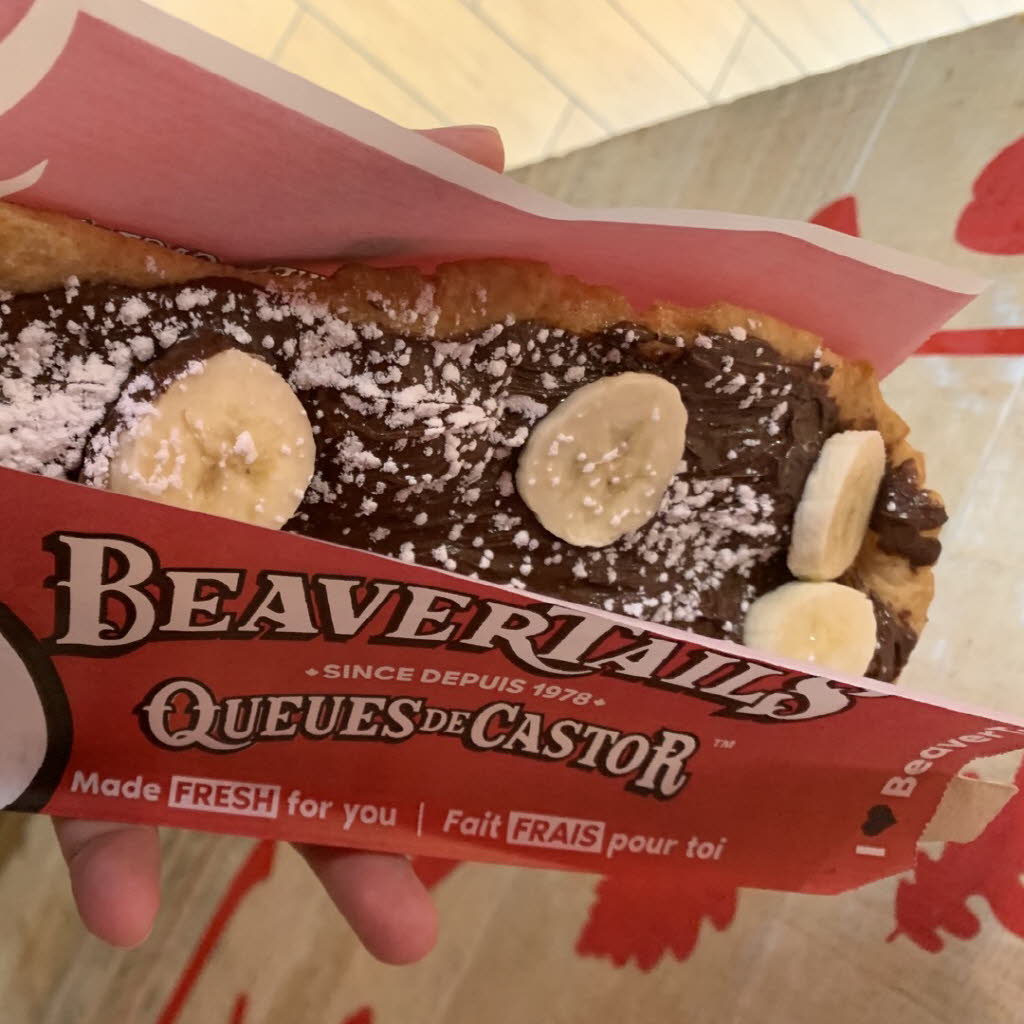 비버테일은 비버 꼬리 같이 생겼다고 해서 붙여진 이름이고 튀긴 빵에 다가 누텔라랑 바나나를 올려서 먹는 음식입니다.