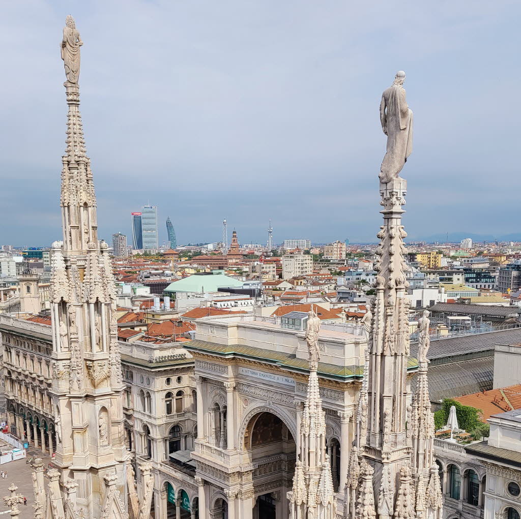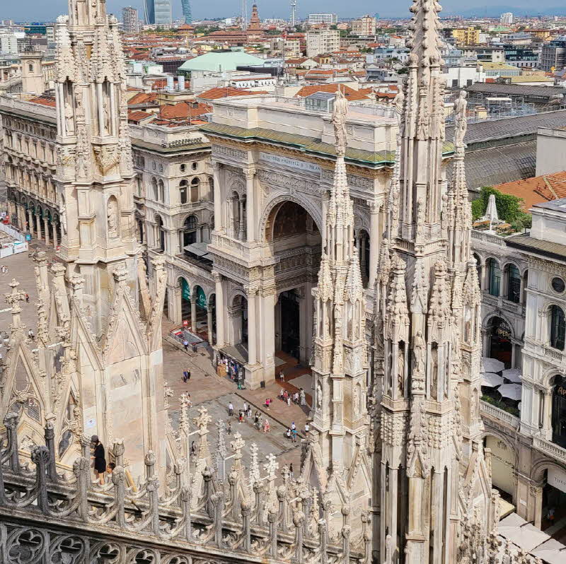 밀라노 두오모 성당의 루프탑 전망대에 올라가면 아름다운 첨탑들과 갤러리아 건물까지 한눈에 감상할 수 있어요.