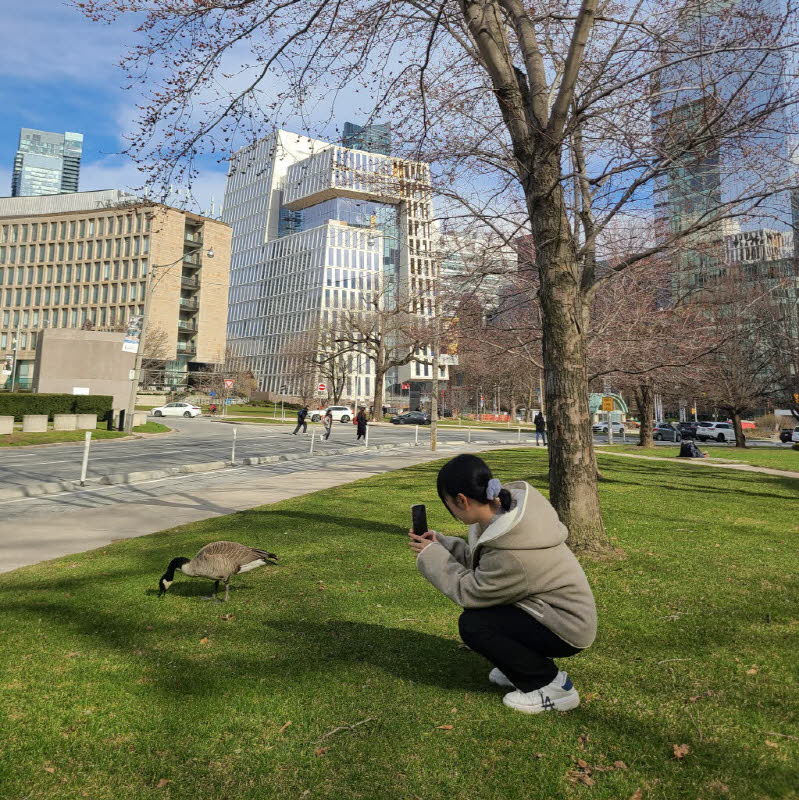 제가 토론토에서의 첫 번째 꽃을 이 대학 캠퍼스 안에서 봤습니다.