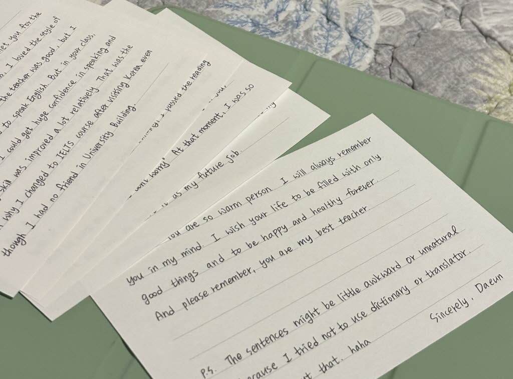 그날이 마지막날이라서 제가 엄청 좋아했던 선생님께 손편지도 써서 드리려고 선생님 반으로 찾아갔는데