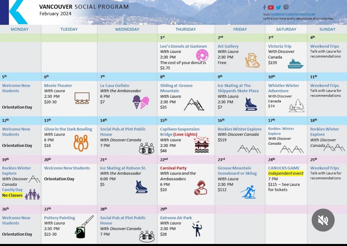 매달 인스타그램에 카플란 액티비티 스케줄 표가 올라와요.