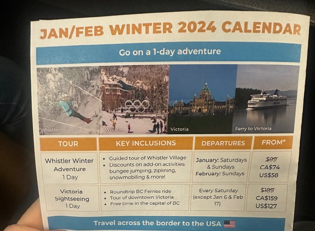 그리고 discover tour와 연계 지어서 시애틀, 로키산맥등 꼭 가봐야하는 지역에도 예약을 통해 갈 수 있으니 책자 확인해보셔도 좋을 것 같아요.