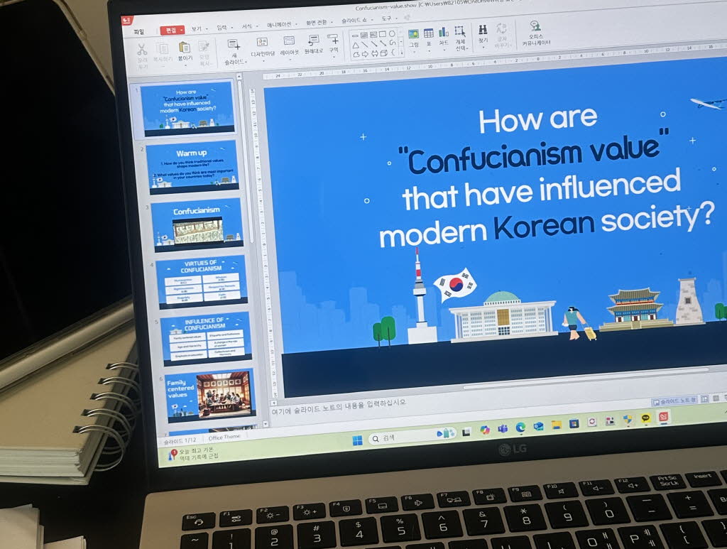 선생님께서 돌아다니시면서 발음이나 문법을 교정해주십니다.