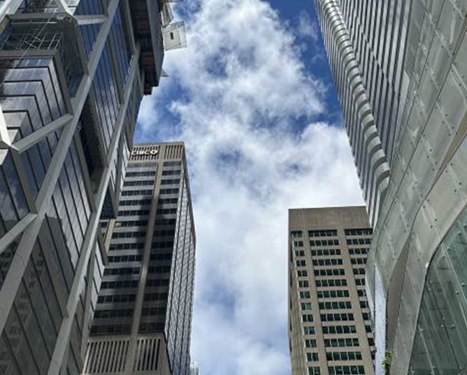 빌딩 숲 사이에 쾌청한 하늘 아래를 누비며 영 스테이션에 도착했다.