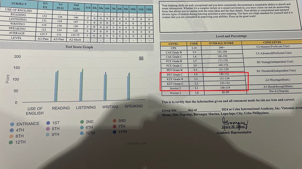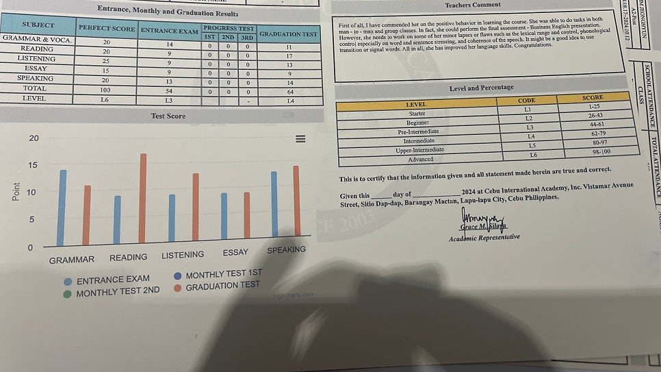 처음에는 ESL 코스 L2에서 시작했지만 마지막 졸업시험은 Business 코스 L4의 성적으로 졸업할 수 있었어요!