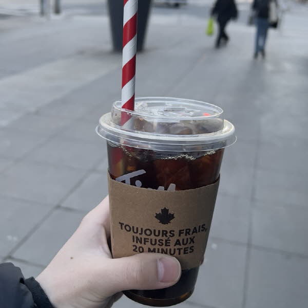 캐나다의 국민 커피 브랜드 팀홀튼에서 따뜻한 커피 한 잔을 먹었습니다. 긴 비행으로 지친 몸을 녹여주는 순간이었습니다!