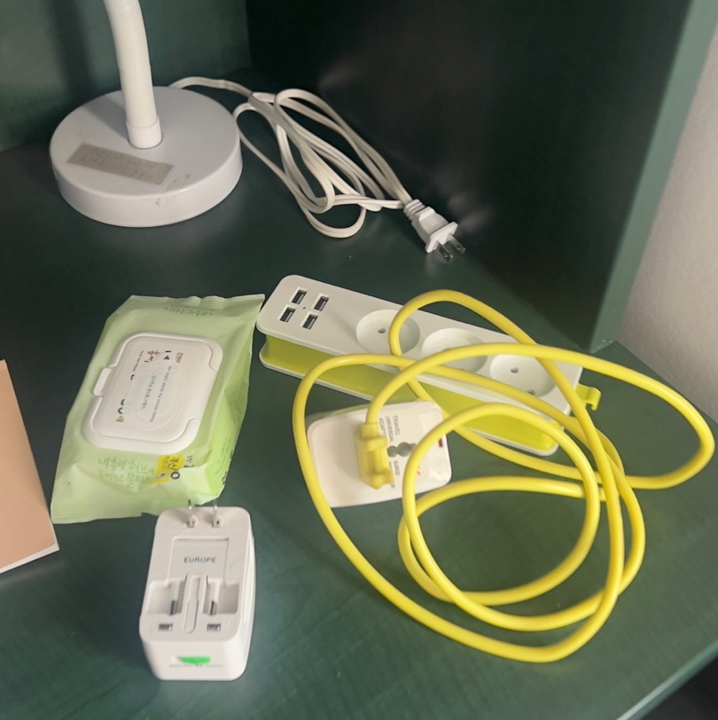 변압기, 멀티탭, 스탠드, 필기구 등 기본적인 물품들이 이미 준비되어 있었습니다.
