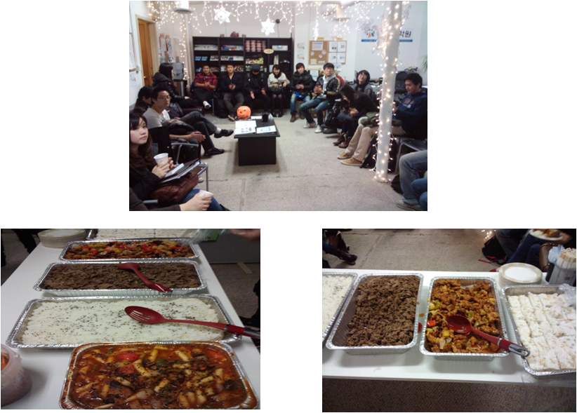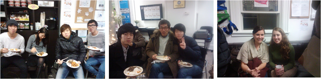 따뜻하고 맛있는 음식을 먹기 위해 파티 시작하기 한참 전에 와서 기다리고 있는 학생들이 많네요 ^^