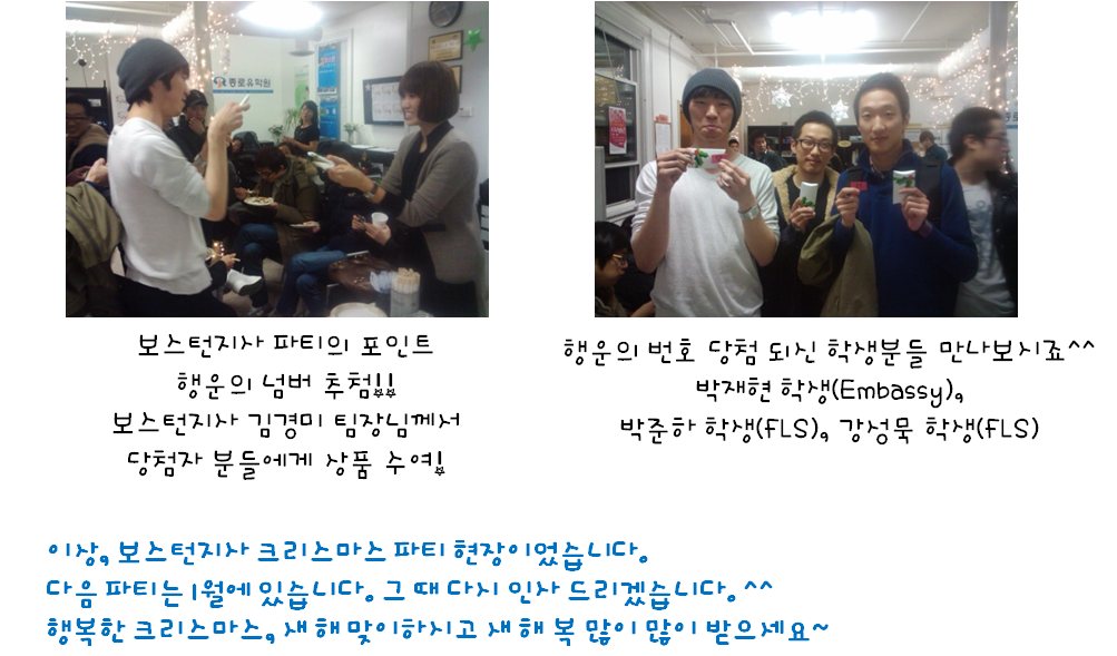 저희 보스턴지사에서 크리스마스를 기념하여 크리스마스 파티를 열었습니다~~