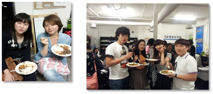 GEOS 이슬기 학생분과 친구분들도 음식 맛있어요~ NESE 김미화 학생과 친구분! 힌번 더 먹기위해 부지런히~