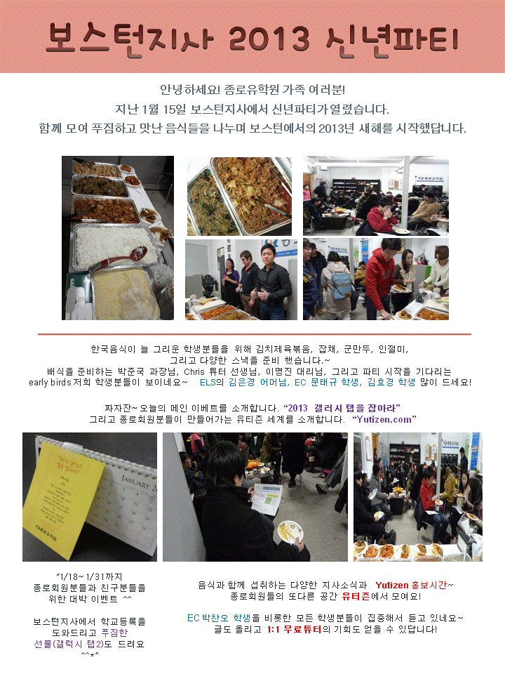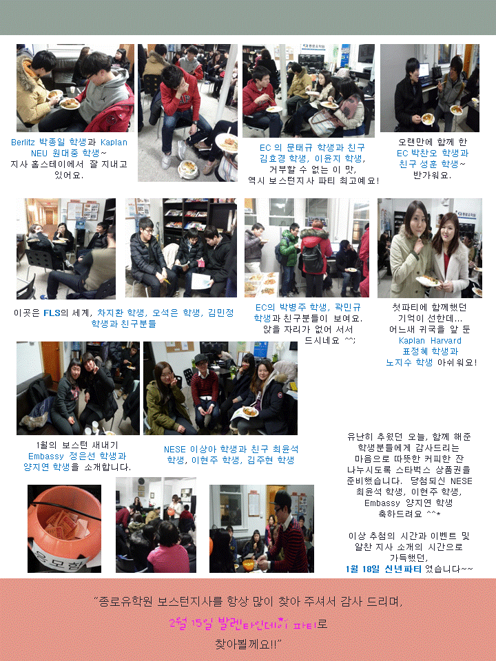 안녕하세요~~~ 보스턴 지사입니다.   지난주 보스턴 지사에서 신년파티가 열렸습니다~~~