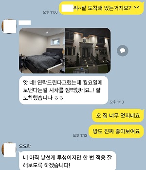 안녕하세요. 박미선 팀장님! 홈맘 분 너무 친절하시고 방도 넓고 좋아요! 학교는 아직 적응 중인데 괜찮아요 ㅎㅎ 좋은 홈스테이 잡아주셔서 감사합니다 🥰